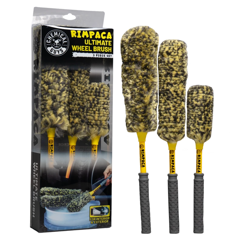 The Rimpaca Ultimate Wheel Brushes combine an ultra soft and supremely fluffy synthetic wool head with the durable and ergonomic handle for a truly versatile brush set that can be used all over your car!