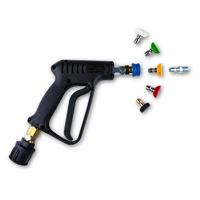 The trigger gun it is supplied with: 1 x Trigger Gun 1 x Set of Quick Tips (White: 40°, Green: 25°, Yellow: 15°, Red: 0°, Black: Rinse) 1 x Quick release 1/4 fitting to convert your existing foam lance 1 x Selected pressure washer inlet fitting
