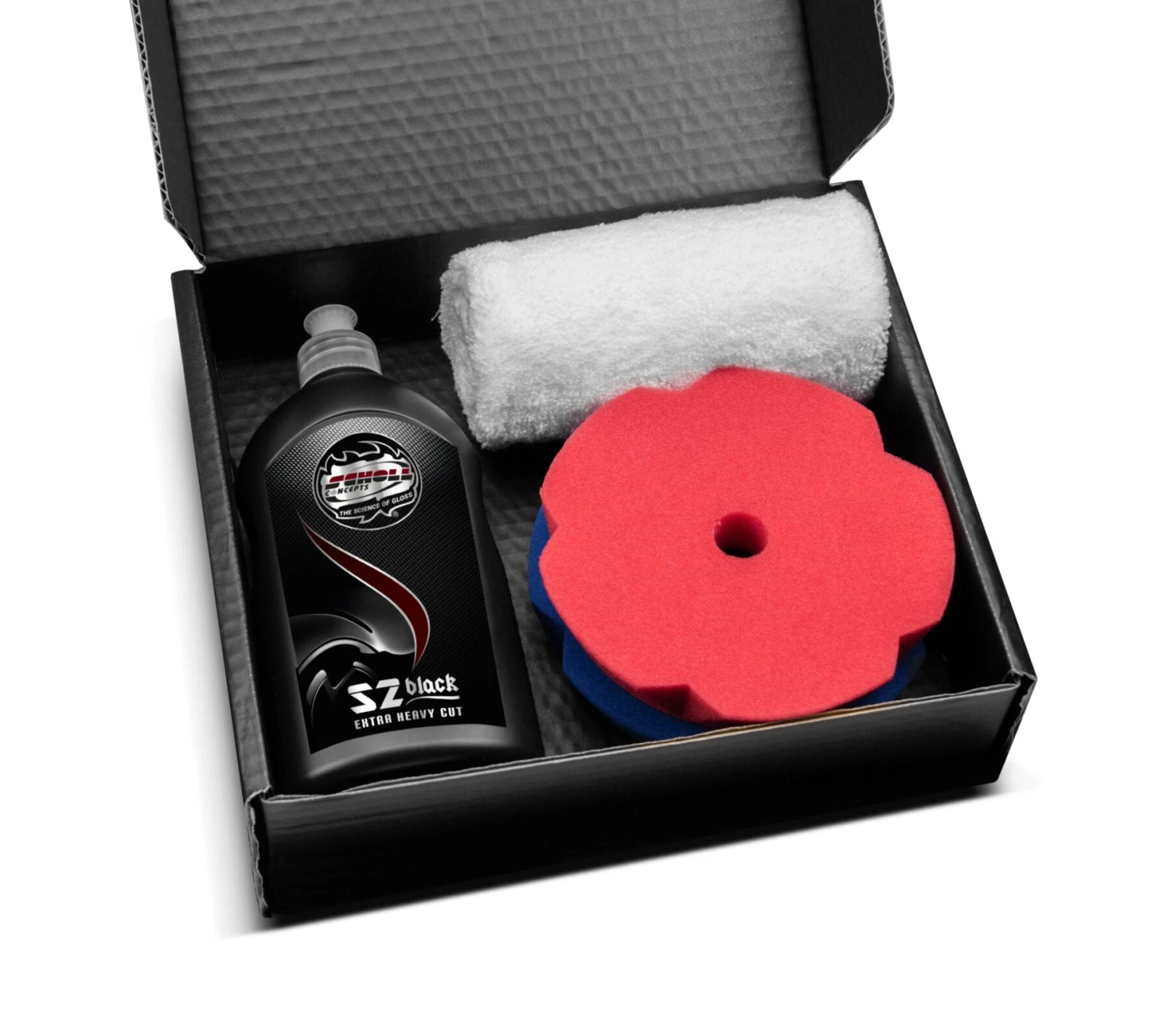 The S2 BLACK High-Performance Cutting Compound can be used on rotary and orbital high-stroke polishers. For best results we recommend the use of our innovative Sandwich-SpiderPad, SpiderPad navy-blue as well as the Premium Pad orange.